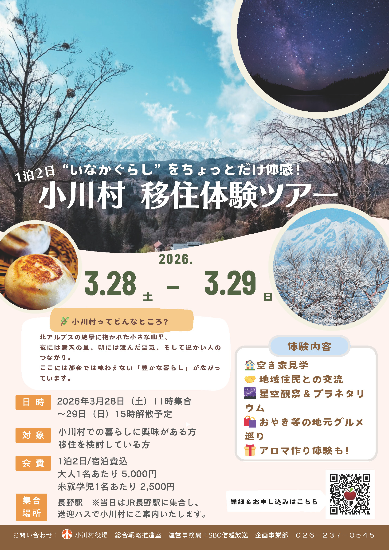 【参加者募集】3月28日(土)・29日(日)開催 信州・小川村 いなか暮らし体験ツアー